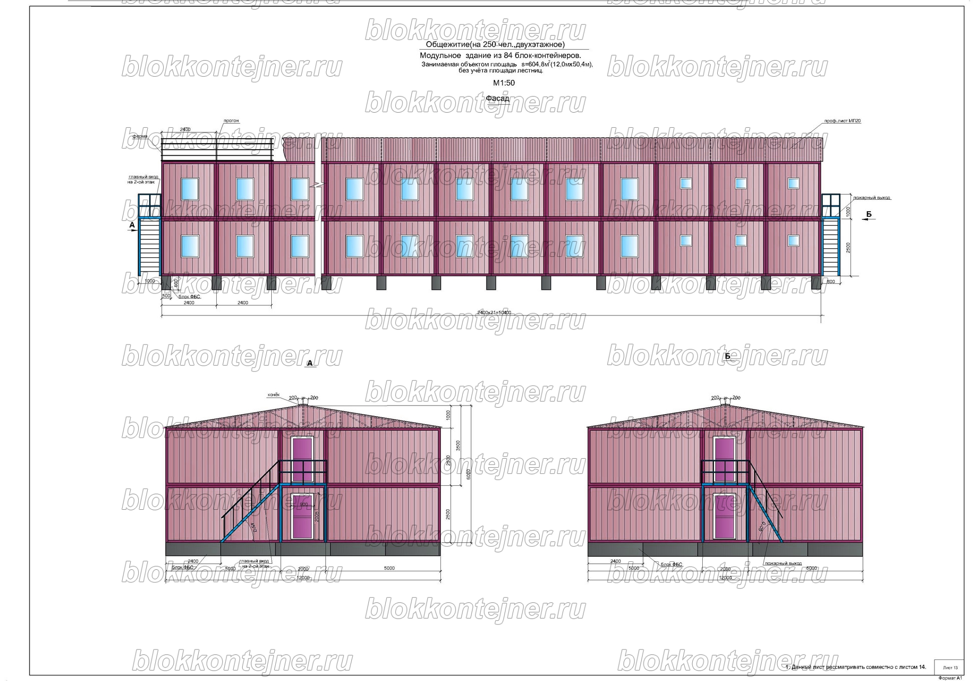 Двухэтажное общежитие на 250 человек из 84 БК